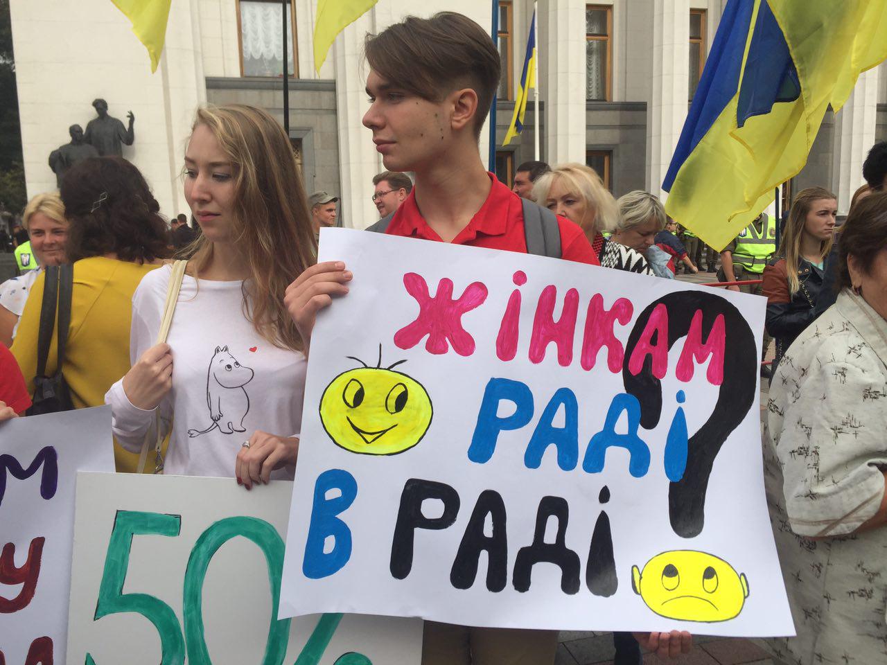 По словам организаторки акции, координаторки Общественного совета по гендерным вопросам МФО "Равные возможности" Ларисы Кобелянскрй, украинский парламент имеет наименьшее в Европе представительство женщин - 12%, в то время как среднемировой показатель - уже почти 24%.