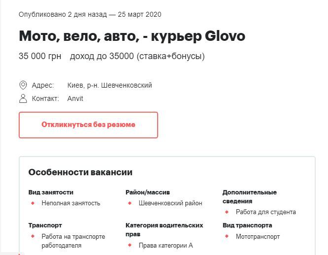 В службе доставки Glovo также огромный спрос на вакансии. На сайте поиска работы компания выставила зарплату в 35 тысяч гривен. Однако руководство не указывает, что это цифра зависит от количества заказов, от бонусов и всего прочего. Настоящая средняя зарплата не превышает 7-8 тысяч гривен. Более того, Glovo решило срезать и без того минимальную зарплату на 35% и не оповещать об этом на сайте вакансий.