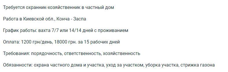 Охранники и садовники – эта сфера, по словам аналитиков, скоро станет лидером на рынке, так как в ней нуждаются магазины, офисы, частные дома и госучреждения. Здесь работодатель не выставляет заоблачных сумм – от 8,5 тысяч гривен в месяц в среднем. Единственное требование – рядом с местом работы, так как эту сферу не включили в перечень тех, кто должен получить пропуска на общественный транспорт.