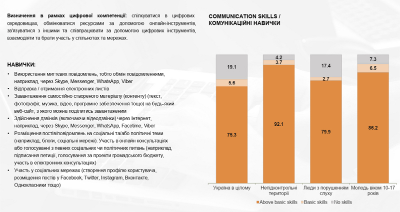 Если говорить о цифровых умениях в целом, украинские пользователи считают, что на высоком уровне владеют информационными и коммуникационными навыками. А навыки решения проблем и работы с софтом проседают.