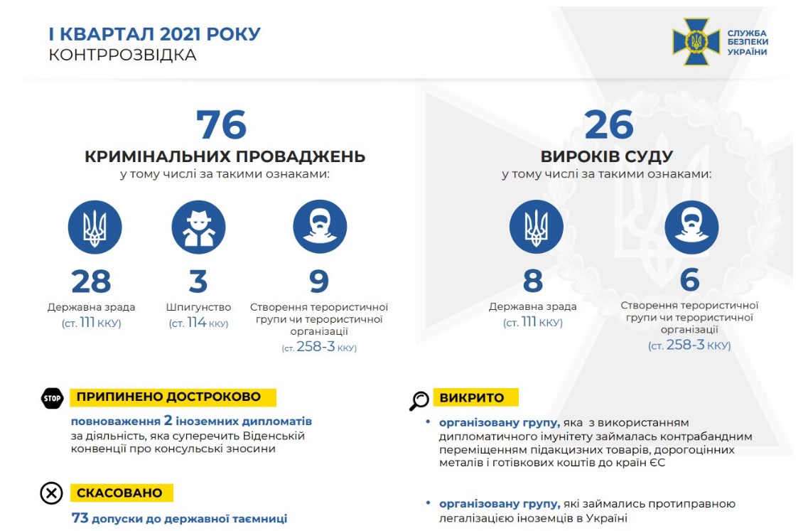 Правоохранители разоблачили более 70 фактов шпионажа, государственной измены и участия в деятельности террористических групп и организаций. Специалисты выявили и пресекли деятельность агентурной сети ФСБ РФ. На территории нескольких областей россияне готовили диверсионные операции, собирали информацию о дислокации и перемещения украинской армии. Также враги планировать похитить одного из бывших командующих Сил специальных операций. Все их действия направлены на дестабилизацию ситуации и намерены применить информацию против Украины. Россияне и дальше будут пытаться собирать информацию о передвижении войск.