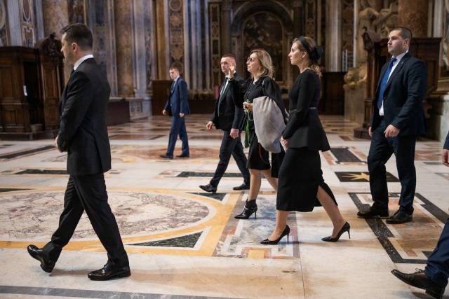 Президент Украины Владимир Зеленский вместе с женой Еленой во время официального визита в Ватикан посетили ватиканские музеи, Сикстинскую капеллу и собор Святого Петра.
