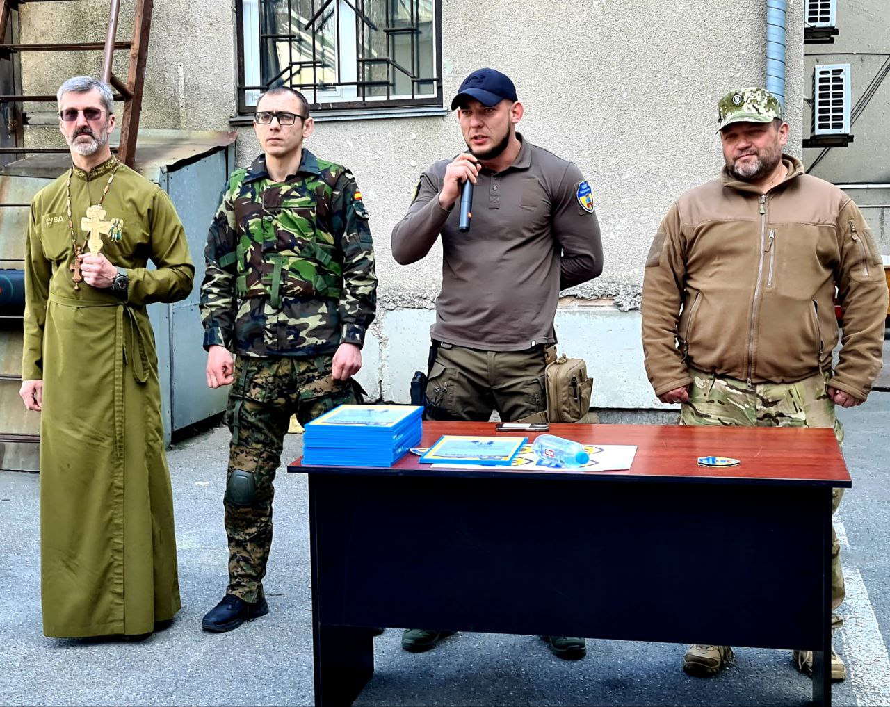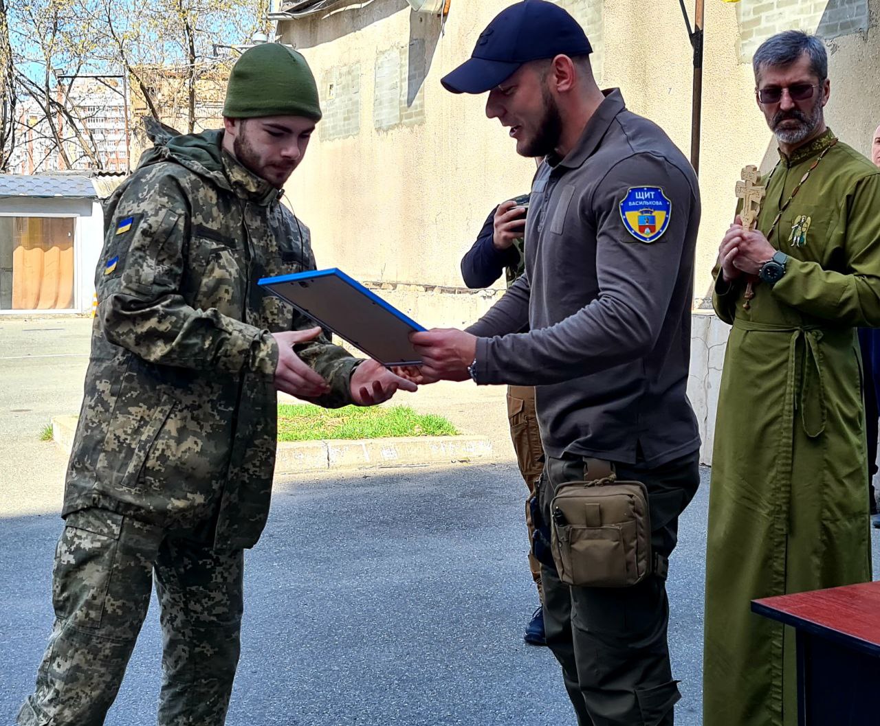 Also, after the ceremony, the commander of the "Old Peppers" Igor "Dushman" Knyazhansky and intercessor Oleg "Beard" Afanasyev gave a comment to the correspondent of ASPI news: “The base of the "Vasilkov's Shield" gave the opportunity to the “Old Peppers” to win the battlefield viz. As for the transport, that additional help from the “Shield” was properly used at Vasilkov, at Irpen, and at the East of Ukraine”.