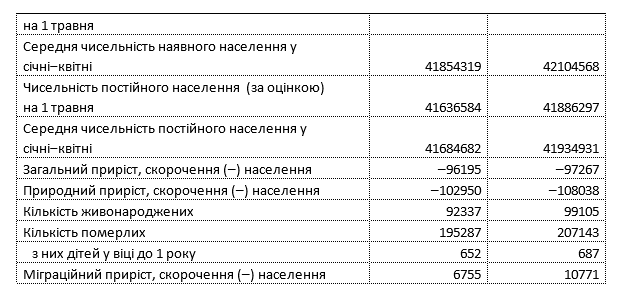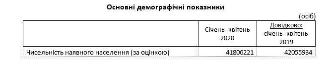 В течение января-апреля 2020 года численность населения Украины сократилась на 96,2 тыс. человек и по состоянию на 1 мая составила 41 806,2 тыс. человек, сообщает Государственная служба статистики. На 100 умерших приходится только 47 родившихся.
