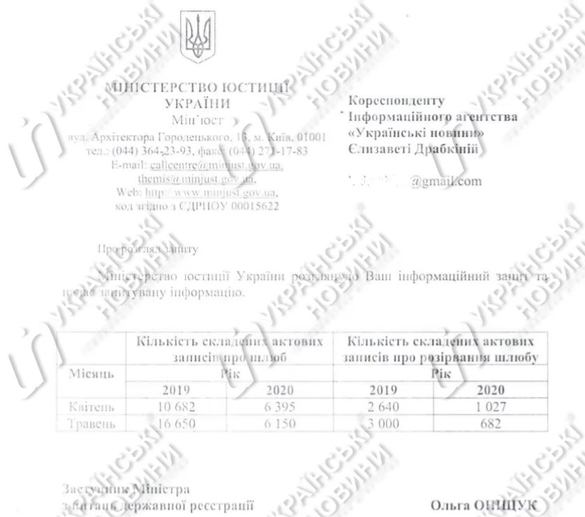 Количество браков во время карантина уменьшилось вдвое, – Минюст (Документ)