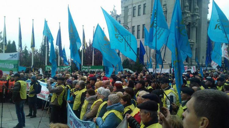 Сегодня, 14 ноября, профсоюз железнодорожников и транспортных строителей митингует под Офисом президента.