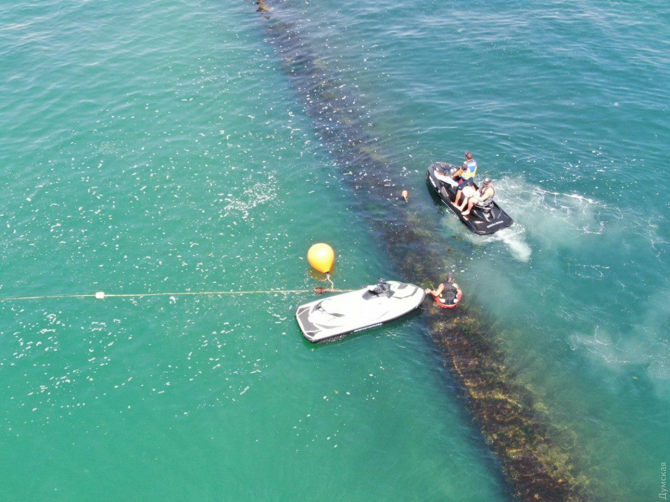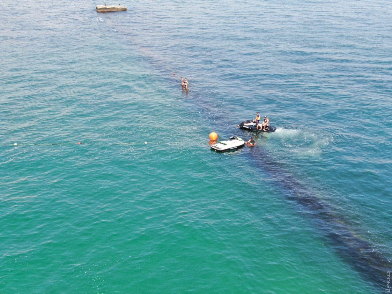 Дельфины застряли между волнорезами на пляже в Одессе. Специалисты инспекций водной и экологии были привлечены к спасению животных.