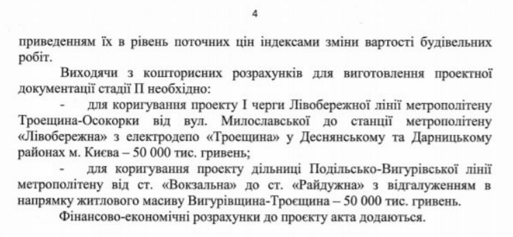 На проект метро на Троещину выделили 100 миллионов гривен (Документ)
