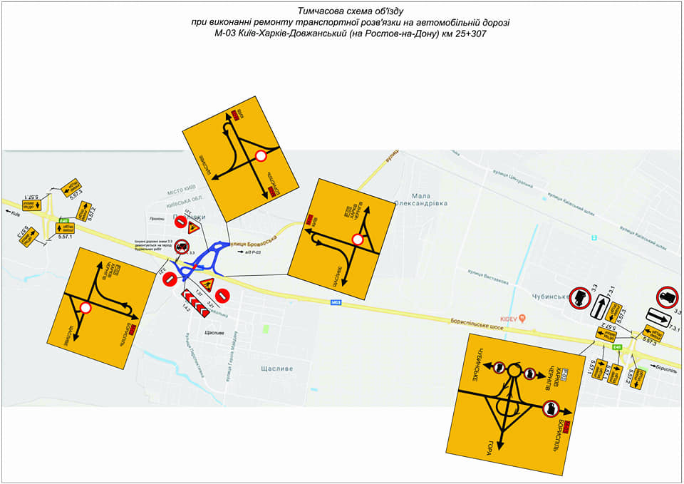 "В связи с началом выполнения работ по капитальному ремонту транспортной развязки км25 + 307 автодороги М03 Киев-Харьков-Довжанский с 20.07.19- 20.10.19 движение автотранспорта по мосту будет закрыто. Объезд осуществляется в соответствии с согласованной схемой. Разворот для транспорта возможен на существующих развязках на км 23 и км31 автодороги М03 Киев-Харьков - Довжанский", - говорится в сообщении службы.