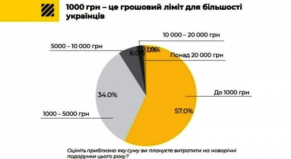 Кроме того, 37% опрошенных украинцев заявили, что потратят на новогодние сюрпризы от одной до пяти тысяч гривен, а 6% - от пяти до десяти тысяч гривен. Если же суммировать эти данные, то среднестатистический украинец потратит на подарки около 2185 гривен.