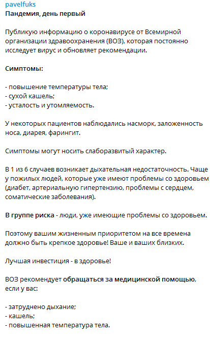Пандемия, день первый: бизнесмен Павел Фукс поделился важными советами, как не заразиться коронавирусом