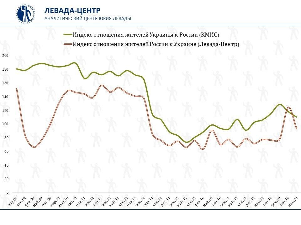 47% опрошенных россиян относятся к Украине отрицательно, 42% – положительно. Об этом свидетельствуют результаты опроса, проведенного в январе 2020 года "Левада-центром", сообщает в четверг, 13 февраля, сайт компании.