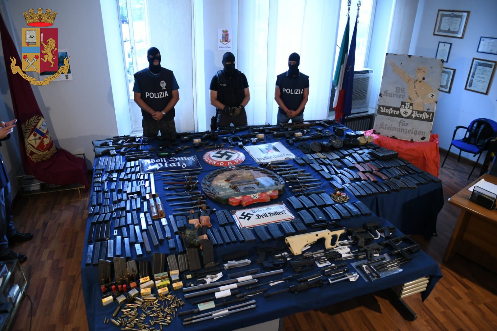 Оружие, а также нацистскую символику, изъяли в нескольких городах Италии - в провинциях Турина, Варезе, Павии, Новары и Форли. Арсенал состоял из девяти боевых ружей, 20 штыков, 306 единиц огнестрельного оружия и даже ракеты класса "воздух-воздух" производства Франции с пометкой принадлежности вооруженным силам Катара. Арестованы три человека - граждане Италии, которые пытались продать это оружие.