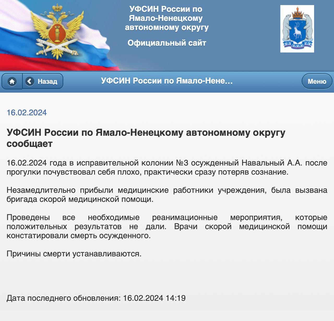 Российский оппозиционный политик Алексей Навальный скончался в исправительной колонии