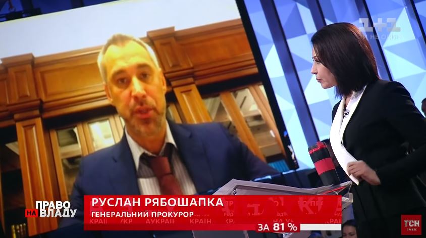 Об это во время прямого включения Рябошапка сообщил ведущей Наталье Мосейчук на 58 минуте видео, опубликованного ТСН на канале YouTube.