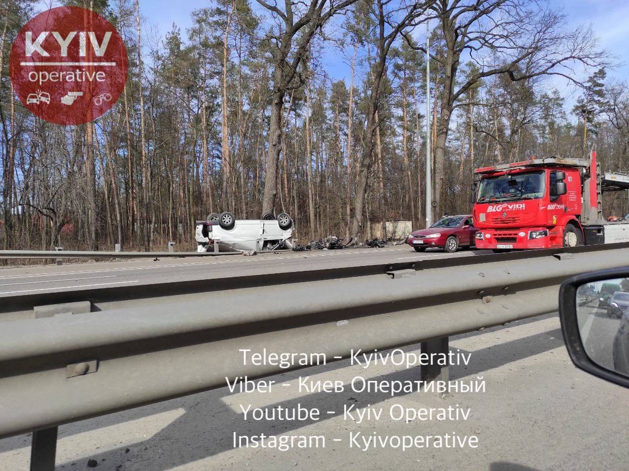 Под Киевом произошло ДТП, в ходе которого разлетевшаяся иномарка была отброшена с трассы и перевернута на крышу. Дорожно-транспортное происшествие произошло на Житомирской трассе, возле разворота на ЖК "Чайка".