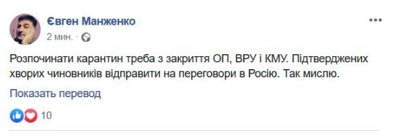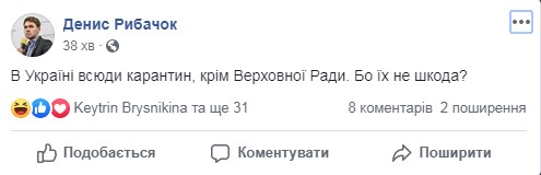 После того, как в среду, 11 марта, Кабинет министров Украины объявил о введении из-за эпидемии коронавируса карантина в Украине, Интернет-сообщество отреагировала комментариями.