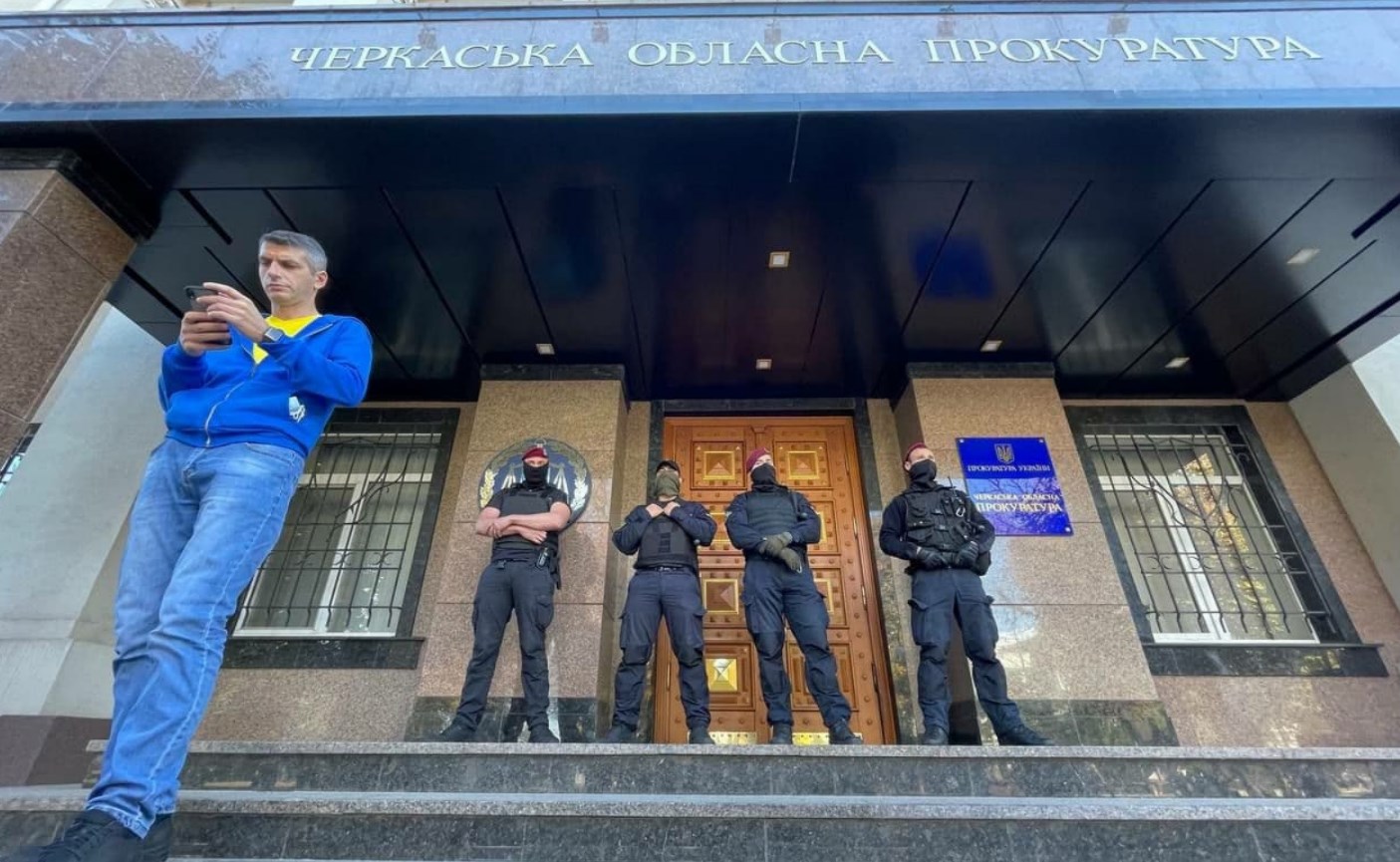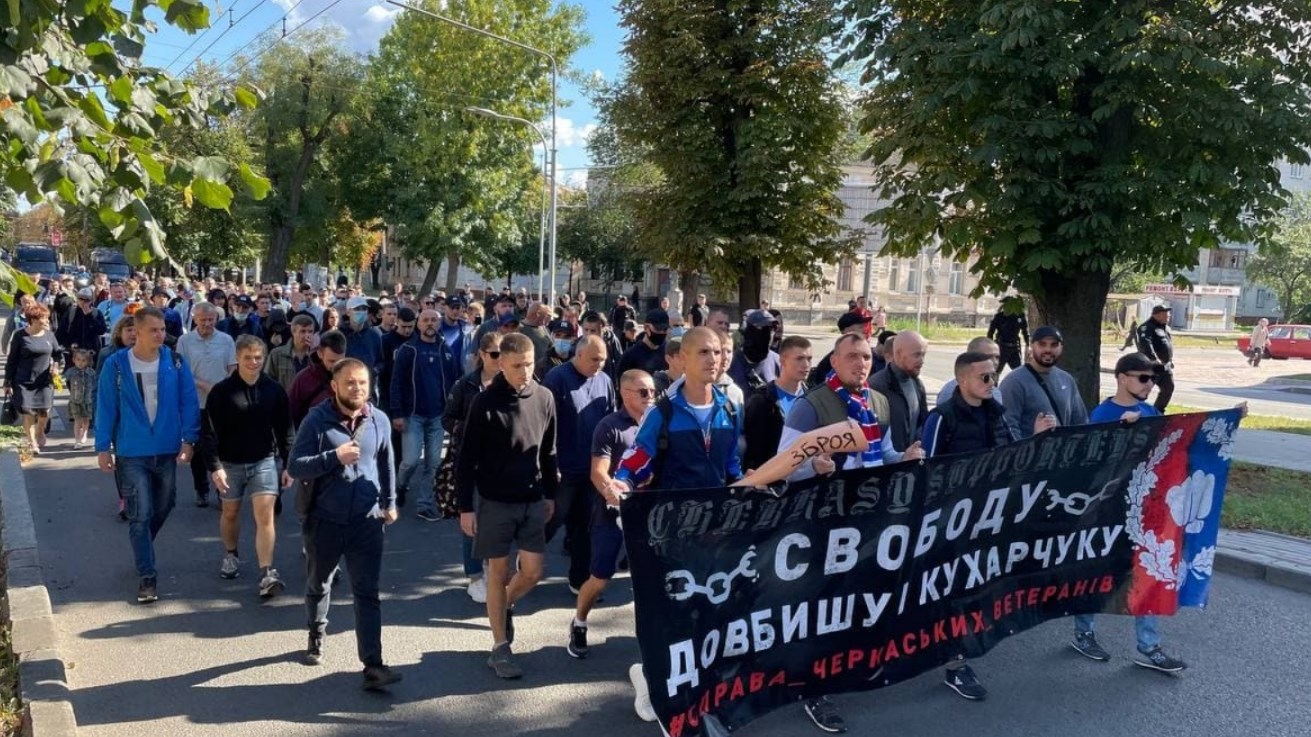 Нацкорпус в Черкассах организовал марш в поддержку ветеранов Олега Довбыша и Дмитрия Кухарчука. Представители организации считают, что в СИЗО мужчин бросили по сфабрикованным производствами.