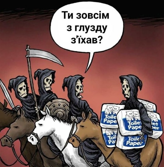 В связи с тем, что в магазинах - дефицит продуктов, в особенности гречки, макаронов, туалетной бумаги, а в аптеках нет масок и лекарств, в сети Интернет появились смешные картинки о "туалетных королях" и о спутниках, которые якобы по ночам замеряют температуру инфракрасными лучами.