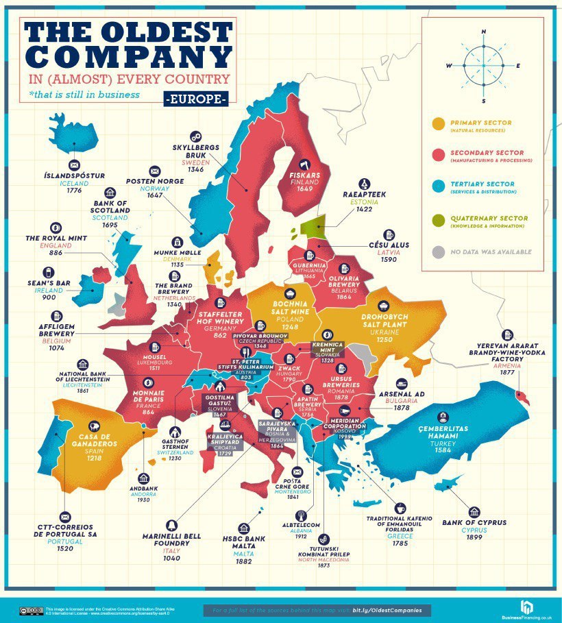 Бизнесмен представил инфографику самых старых компаний европейского континента.