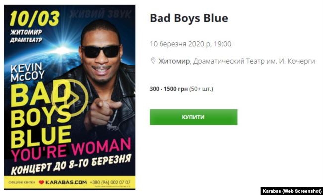 В одном из областных центров Украины запланировано выступление бывшего солиста Bad Boys Blue Кевина Маккойя, который ранее выступал в аннексированном Россией Крыму.