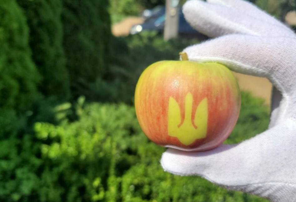 Она отметила, что последние 5 лет в семейном саду занимаются нанесением изображений на выращенные яблоки. На плодах можно увидеть иллюстрацию во время их созревания. В этом году Тризуб стал одним из самых узнаваемых символов на плодах.