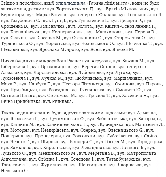Дома на около ста улицах Львова будут оставаться без воды как минимум до 20:00, сообщает Захид.нет.