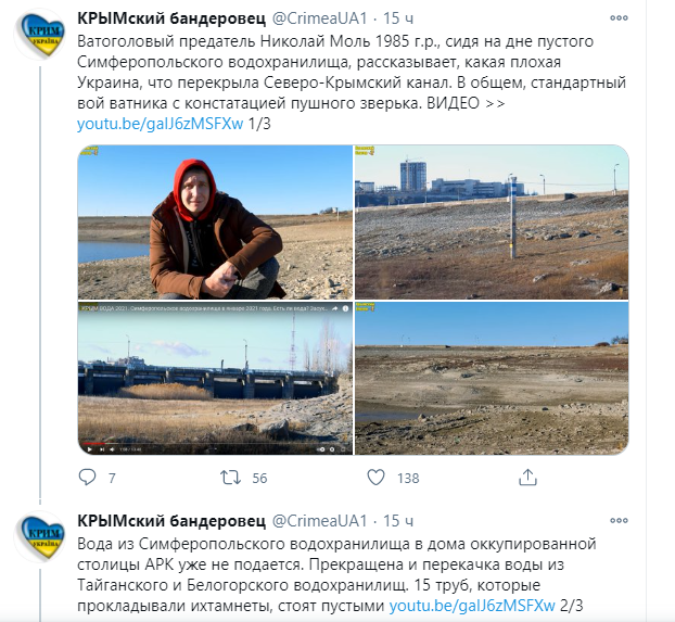 По его данным, вода из Симферопольского водохранилища в доме оккупированной столице АРК уже не подается. Прекращена и перекачка воды из Тайганского и Белогорского водохранилищ. 15 труб, прокладывали оккупанты, стоят пустыми.