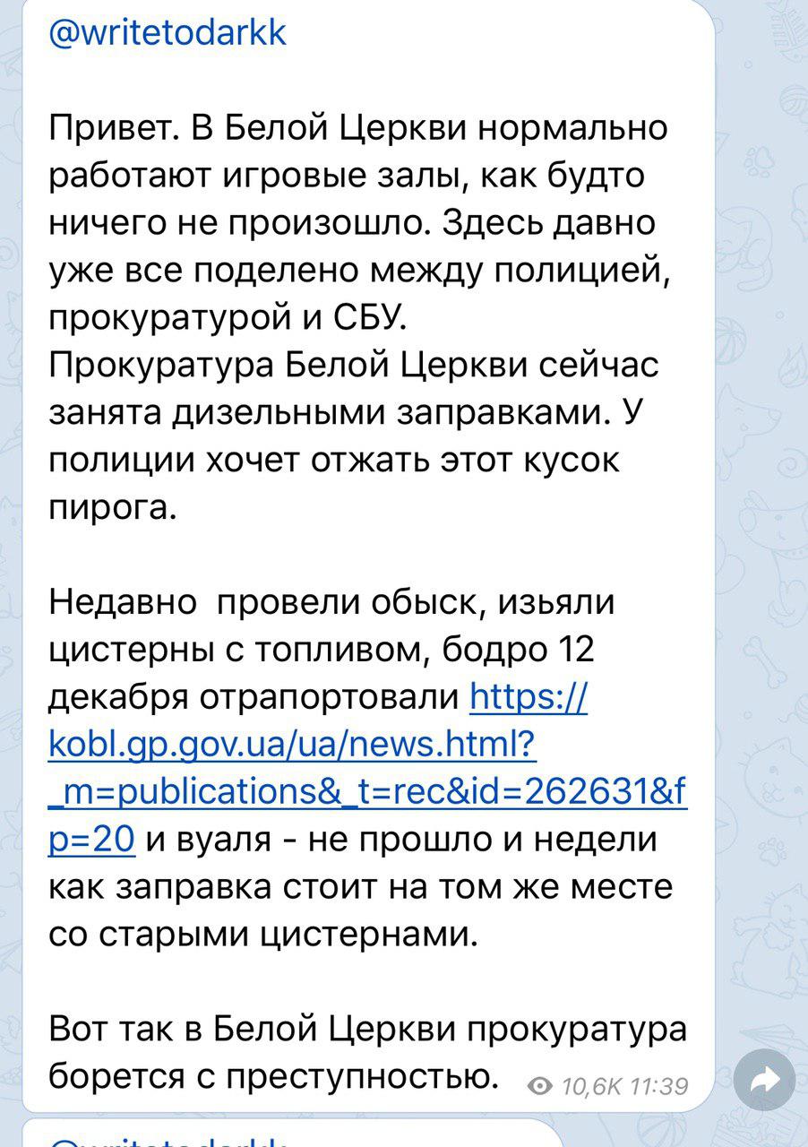 "Постановление Кабмина нам диктует, что все игровые клубы, лотереи и игорные заведения должны быть закрыты. Требую от Нацполиции до 16 часов 20 декабря в соответствии с постановлением КМУ прекратить функционирование игорных заведений", - добавил он.