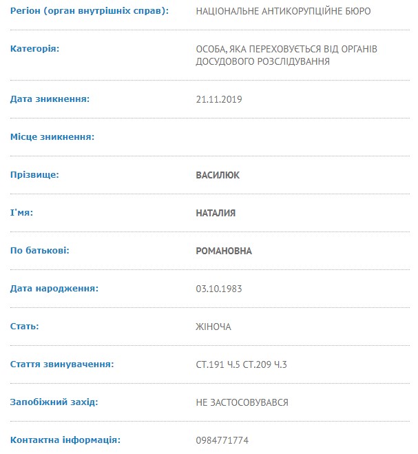 НАБУ также разыскивает экс-главу наблюдательного совета VAB банка Наталью Василюк.