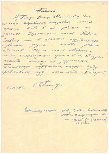 Деркач опубликовал фото документа в Facebook. В подписке сказано, что ее автор берет агентурный псевдоним Валерий. На пресс-конференции, которую сегодня транслировали агентство "Интерфакс-Украина", нардеп заявил, что это оригинал документа.