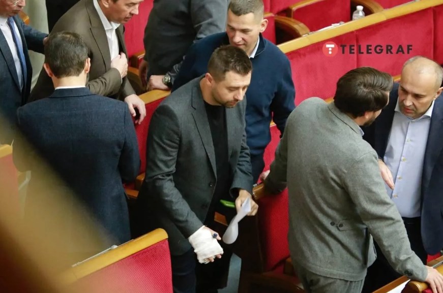 "Диджей-сет в Трускавце": Арахамия с травмированной рукой пришел в Раду голосовать за отстранение Разумкова (Фото)