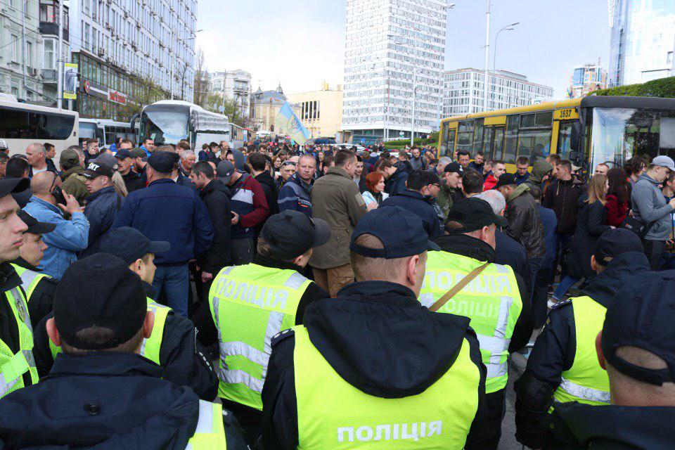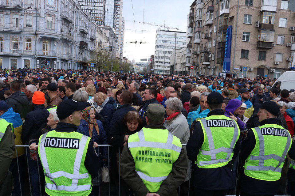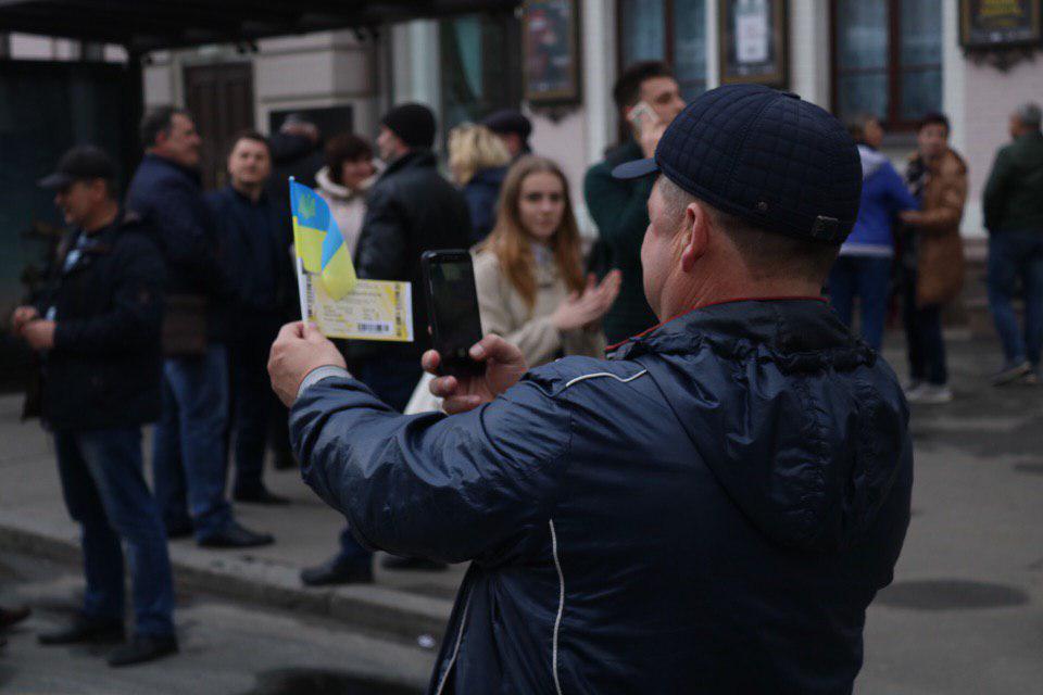 Возле НСК "Олимпийский", где через несколько часов должны начаться дебаты кандидатов в президенты Петра Порошенко и Владимира Зеленского уже выстроились очереди желающих увидеть их лично.