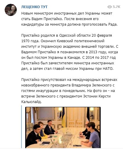 Так, следуя из прогнозов Лещенко, но должность главы МИД вполне может рассчитывать Вадим Пристайко.