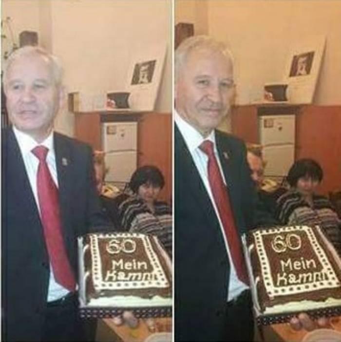 Издание "Громадське" в свою очередь опубликовало скриншот удаленного поста дипломата в Facebook, где он позирует с тортом на котором красуется надпись "60 Mein Kampf" ("Моя борьба", автобиография Адольфа Гитлера, в которой он изложил собственную идеологию национал-социализма, — ред.).