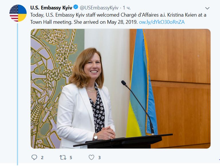 В Украину прибыла временно поверенная в делах США Кристина Квин.