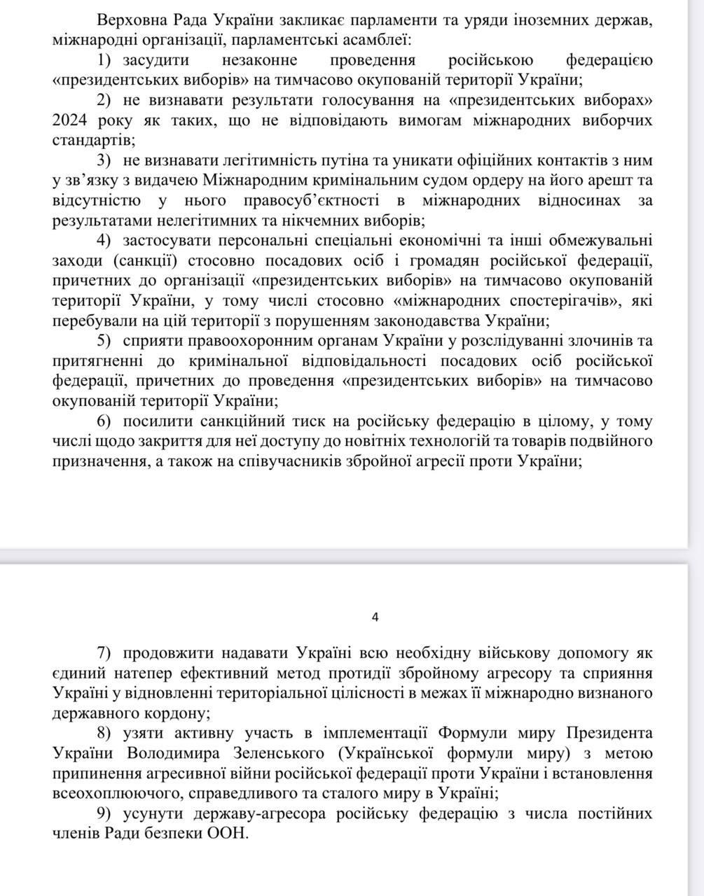1) осудить незаконное проведение русской федерацией "президентских выборов" на временно оккупированной территории Украины;