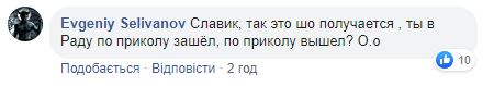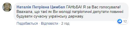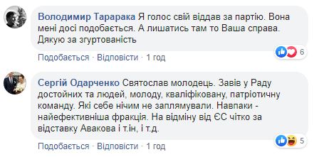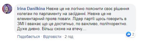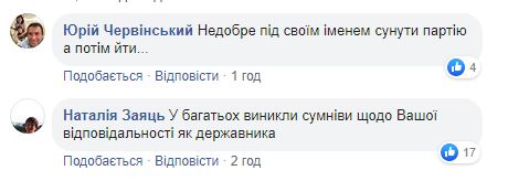 Пользователь Facebook Наталья Габорець заявила, что не поддерживает решение Вакарчука идти из парламента и что его поступок, по сути, предательство. Она также раскритиковала и “подлый сговор депутатов не голосовать за вашу отставку”..
