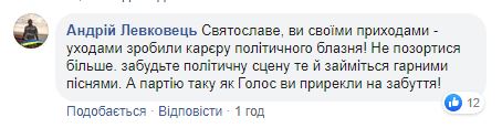Кое-кто даже высказал сомнение, что партия “Голос” останется жизнеспособным политическим проектом. Судя по реакции пользователей, Вакарчук может потерять в популярности и как певец.