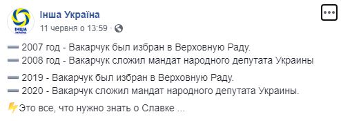 Заявление Вакарчука о том, что он уходит из парламента, потролили в интернет-сети еще неделю назад. Депутату напомнили, что он едва выдержал год в парламенте в "нулевых" и в 2008 году сложил полномочия, и теперь повторяет то же самое.