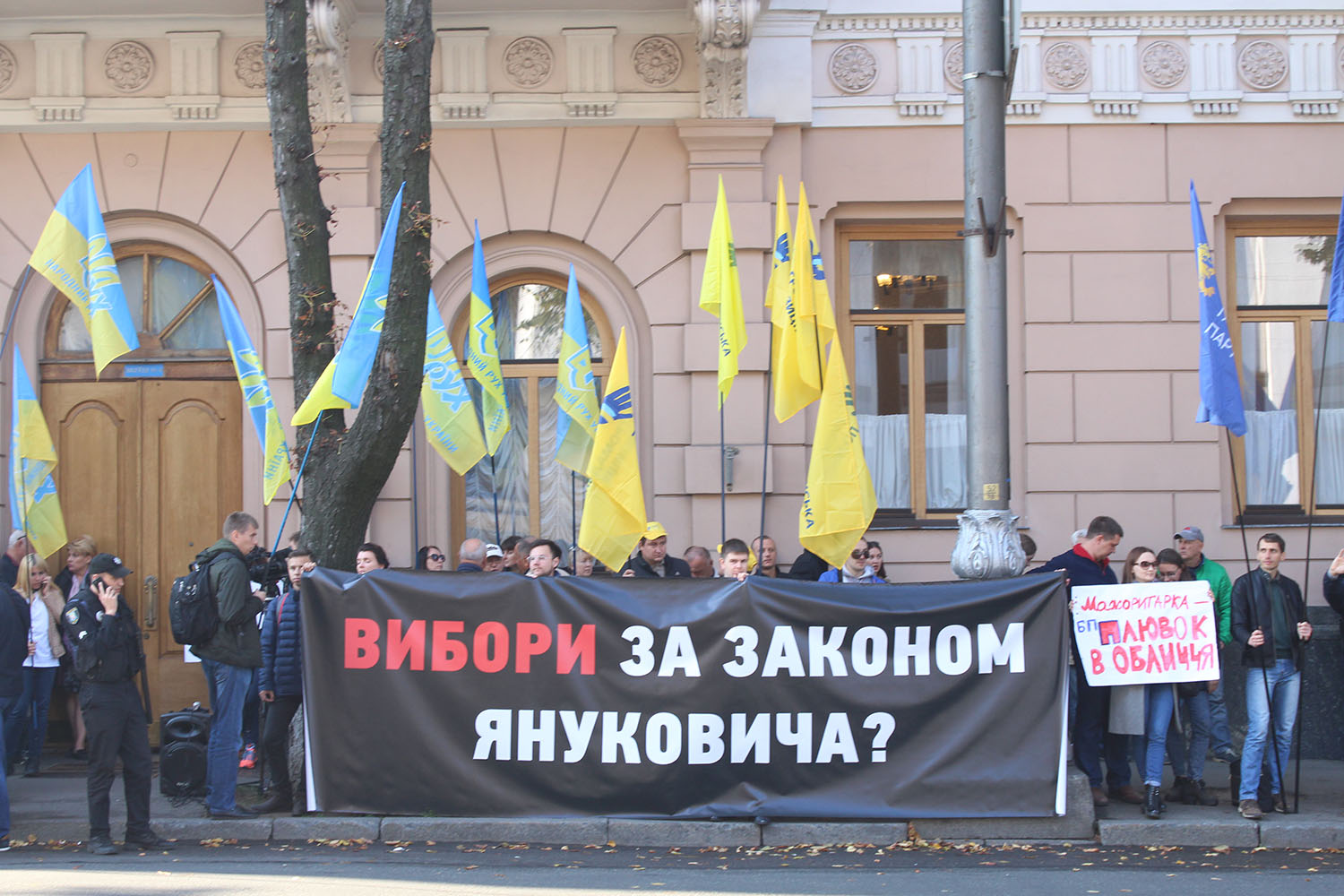 Представители 20 политических партий с плакатами "Мажоритарка - плевок в лицо" собрались под парламентом и требуют депутатов принять во втором чтении законопроект, которым вносятся изменения в избирательное законодательство.