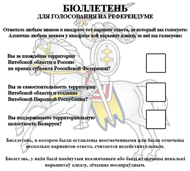 На то, что Кремль подогревает протестную ситуацию в собственных интересах, указывают информационные листовки т.н. "Витебской народной республики", что сейчас появились в сети. Возможно это и фейк, но почерк спецслужб РФ здесь видно издалека, особенно украинцам, которые уже более 6 лет удерживают фронт по линии разграничения с т.н. "Л/ДНР".