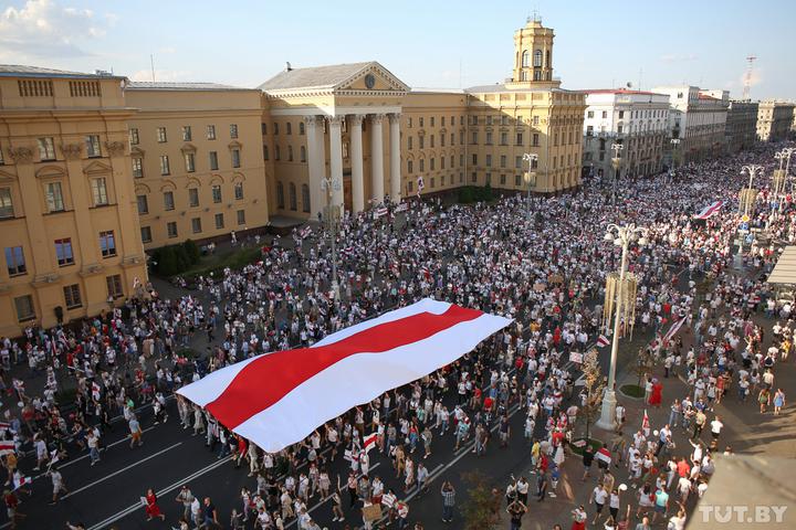 Параллельный митинг в столице Беларуси на проспекте Победителей у стелы "Минск - город-герой" оппозиционных к действующей белорусской власти граждан, оказался гораздо более многочисленным, хотя сам "бацька" назвал их почему-то "меньшинством". "Мы понимаем, это меньшинство, однако они должны учитывать мнение подавляющего большинства", - сказал он. По подсчетам TUT.BY, на улицу вышло около 220 тысяч человек. Хотя, по версии Давида Мансо, там собралось 127,3 тысячи человек.
