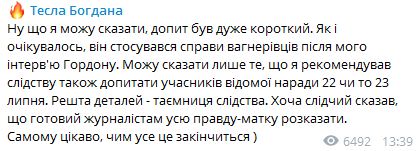 "Ну что я могу сказать, допрос был очень короткий. Как и ожидалось, он касался дела вагнеровцев после моего интервью Гордону. Могу сказать лишь то, что я рекомендовал следствию также допросить участников известного совещания 22 или 23 июля. Остальные детали — тайна следствия. Хотя следователь сказал, что готов журналистам всю правду-матку рассказать. Самому интересно, чем все это закончится", - прокомментировал Андрей Богдан свой визит в ГБР.