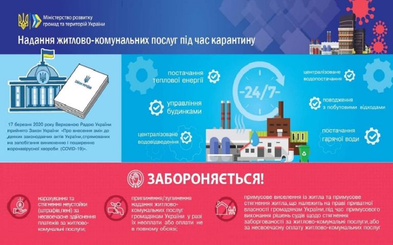 Министерство развития общин и территорий Украины разместило на своем сайте разъяснение о предоставлении жилищно-комунальных услуг во время действия карантина.
