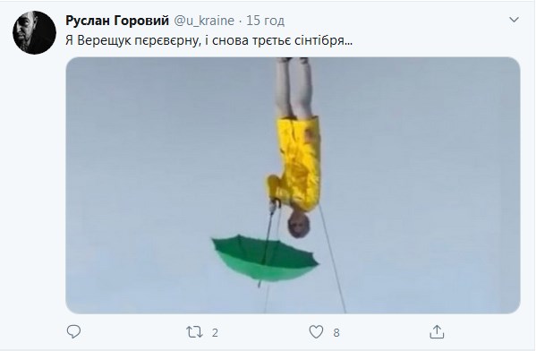 Рейтинг Ирины Верещук как кандидата на пост главы столицы значительно уступает электоральным показателям партии "Слуга народа" в Киеве. Поскольку попытки играть с креативными слоганами на билбордах потерпели фиаско, в ход пошли нетрадиционные методы — депута подняли краном над землей.