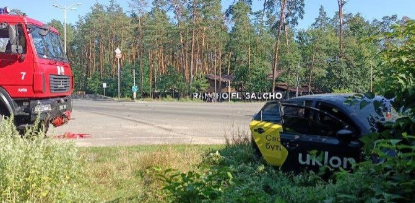 Таксисты на Chevrolet Lacetti и Volkswagen Polo ехали в одной линии со стороны площади Шеченка к КПП "Пуща-Водица". Об этом 9 августа сообщили "Вартові Еспресо" в телеграмме.