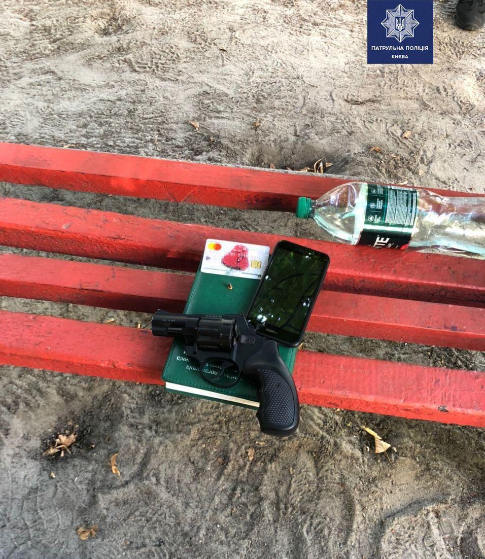 По описанию нарушителя, полученному от сотрудницы банка и других очевидцев, патрульные полицейские вскоре смогли установить местонахождение злоумышленника и задержать его. Во время поверхностного досмотра мужчины правоохранителями был обнаружен предмет, имеющий схожесть с пистолетом. Патрульные вызвали на место следственно-оперативную группу Святошинского управления полиции для изъятия предмета и предоставления правовой квалификации действиям мужчины.