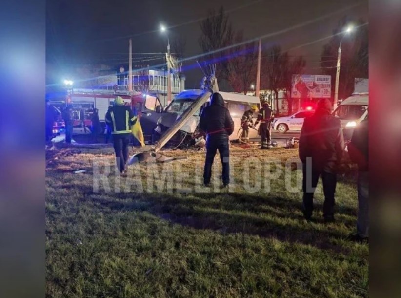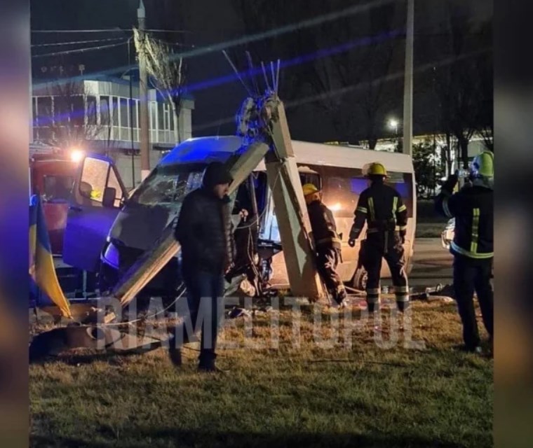 Маршрутка врезалась в столб в Мелитополе. Авария на территории города была зафиксирована на Южном выезде 11 января.