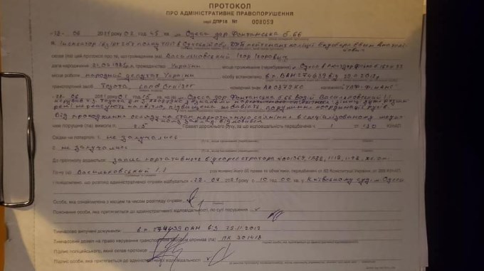 Он также опубликовал фото протокола и водительских прав депутата. Общественность требует объяснений от пропрезидентской политической силы.